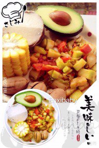午餐:中午焗了一盘芝士饭,几种蔬菜+米饭+牛肉+厚厚的马苏里拉,最后点了几滴辣酱,超美味!让他吃他不吃,硬给他尝了一口,说明天午餐还要吃^_^
